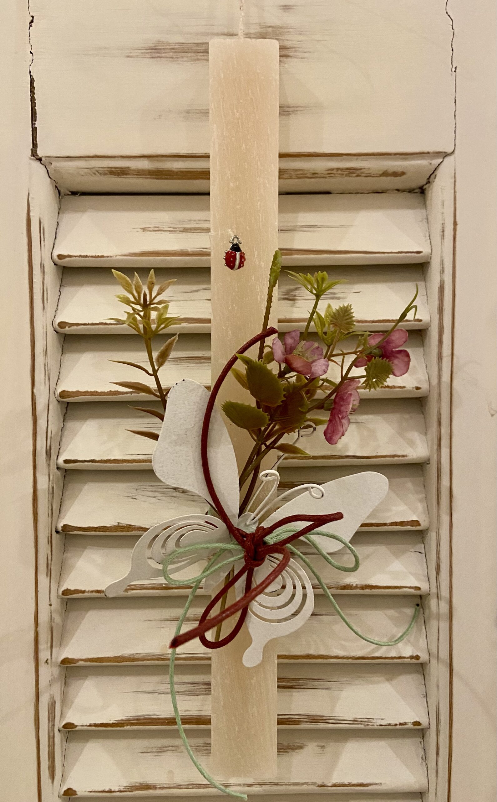 Χειροποίητη λαμπάδα για κορίτσια σε πλακέ αρωματικό κερί με μεταλλική πεταλούδα