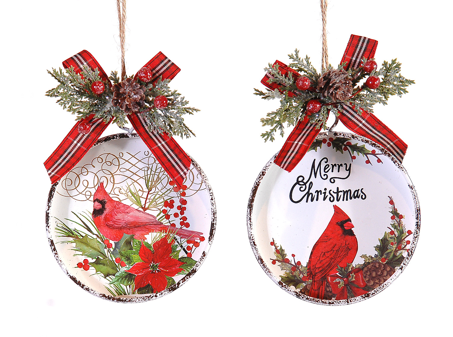 Χριστουγεννιάτικη μπάλα με μεταλλικά κόκκινα στοιχεία 12cm V-13853