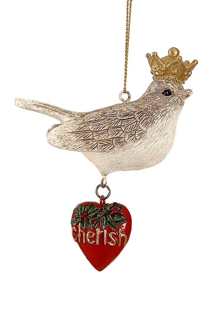 Χριστουγεννιάτικο Στολίδι πουλάκι χρυσό με κρεμαστή κόκκινη καρδιά 10cm